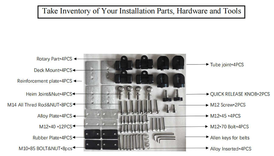 Note that this ins action guide is only a guideline. Each boat is different and improvisation is needed to mount your tower on your boat.Following all the installation instructions will give you a professional installation look. If you are not good at it, we advise you to have your tower mounted by a professional who has experience in boat constructions and mounting other towers.